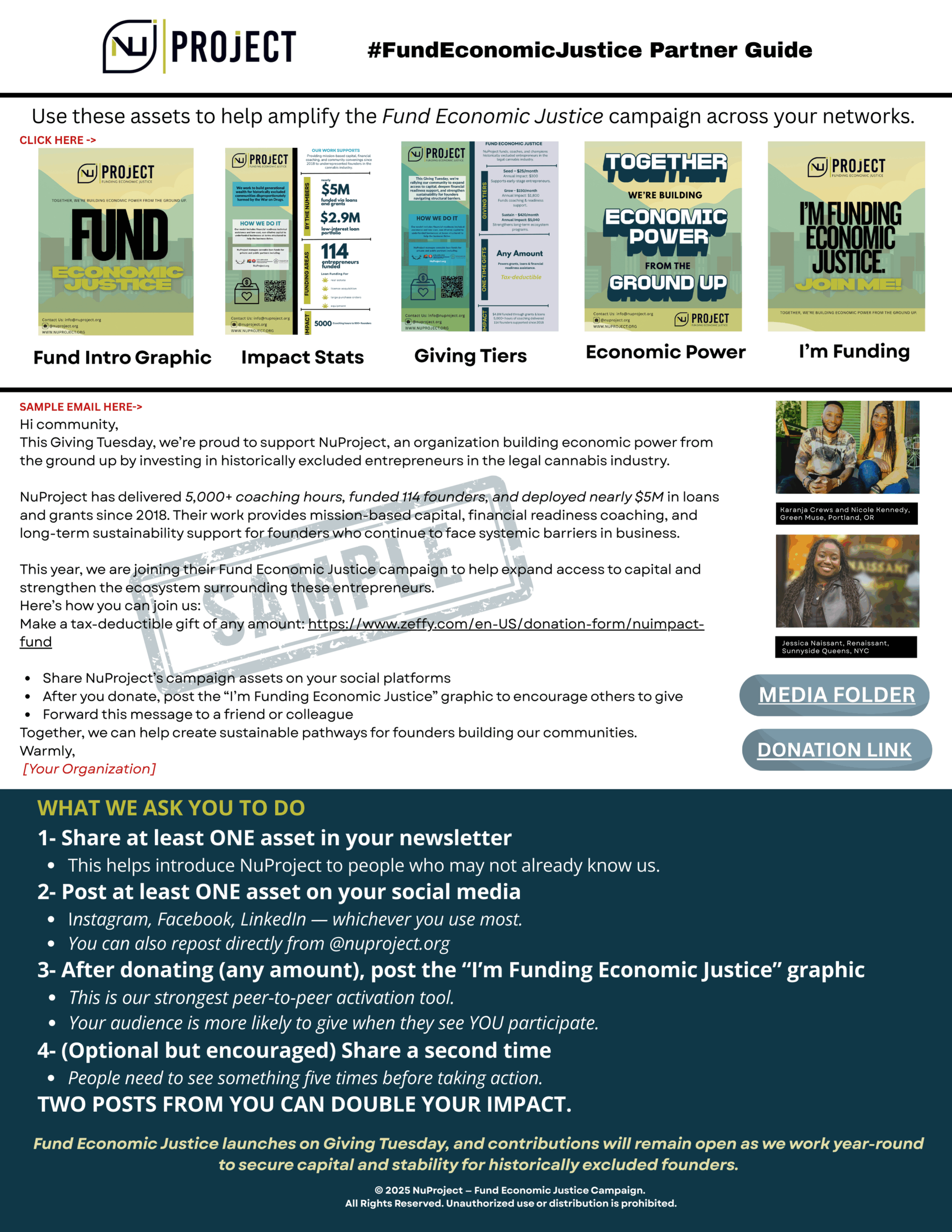 Communities disproportionately harmed by the War on Drugs continue to face barriers to capital, ownership, and economic mobility. Your support fuels real solutions, mission-based funding, financial coaching, and community programs that build generational wealth where it’s most needed.